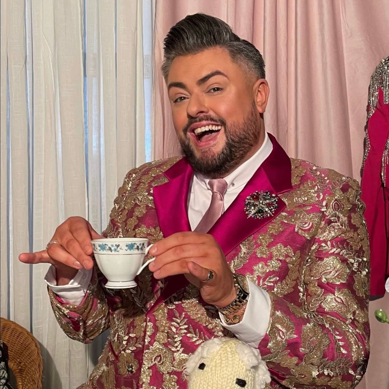 The fabulous Graham Norton wearing one of four of his custom made jackets on BBC Drag Race UK 2024